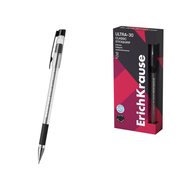 Erich Krause hemijska olovka Super Glide Technology 0.7 sa crnim mastilom predstavlja profesionalni ekvivalent svoje verzije sa plavim mastilom zahvaljujući upotrebi iste Super Glide tehnologije koja obezbjeđuje ultra gladak rad bez trenja. Ovaj proizvod je namijenjen ljudima koji žele da koriste visoku vidljivost crnog mastila za dokumentovanje, crtanje ili bilo koje druge kancelarijske zadatke