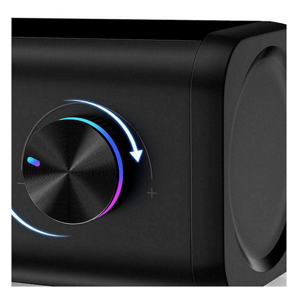 | Dizajn | Dugačak i vitak ovaj soundbar je savrseno dizajniran da se lijepo uklopi ispod monitora. Uključuje izdržljiv, metalni mrežasti poklopac otporan na prašinu i nezavisno dugme za jačinu zvuka za laku kontrolu |