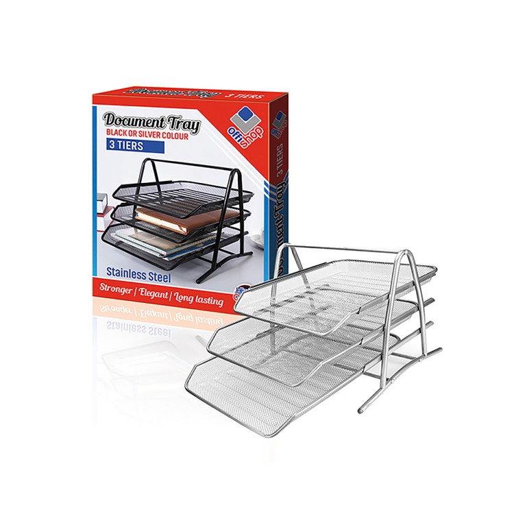 Polica za dokumenta Žičana 1/3 OF599 je profesionalni organizator za sto sa 3 nivoa. Proizvod se isporučuje u setu od tri horizontalne fioke napravljene od žičane mreže koje se mogu spojiti sa metalnim okvirom