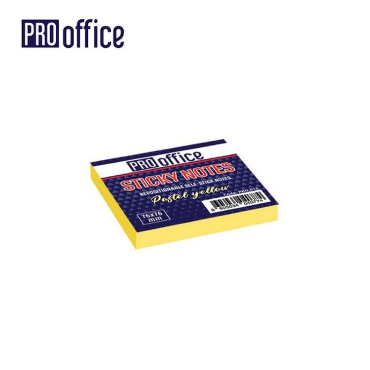 Samoljepljivi Blok Pastel Žuti 76x76mm PRO015 je standardni set ljepljivih blokova kvadratne veličine od ProOffice-a koji se može koristiti za kreiranje bilješki i podsjetnika